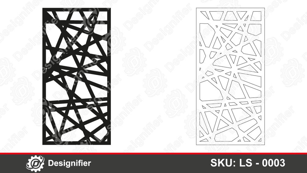 Laser cut panel LS0003 design is ready to cut for metal or wood and many materials we’ll explain using a CNC cutting system. You can make excellent decorations with these intersected lines designed in windows, doors, etc. You can use this artwork for stained glass, marble cutting, and furniture decorating. This artwork can be used for cutting all materials below and engraving some of them according to the machine you’ll use.